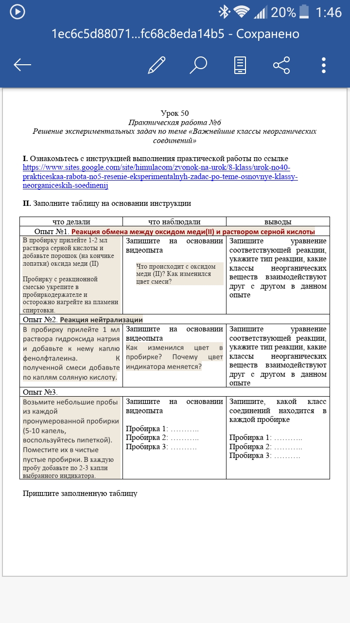 Помогите пожалуйста заполнить таблицу, где что сделали и выводы